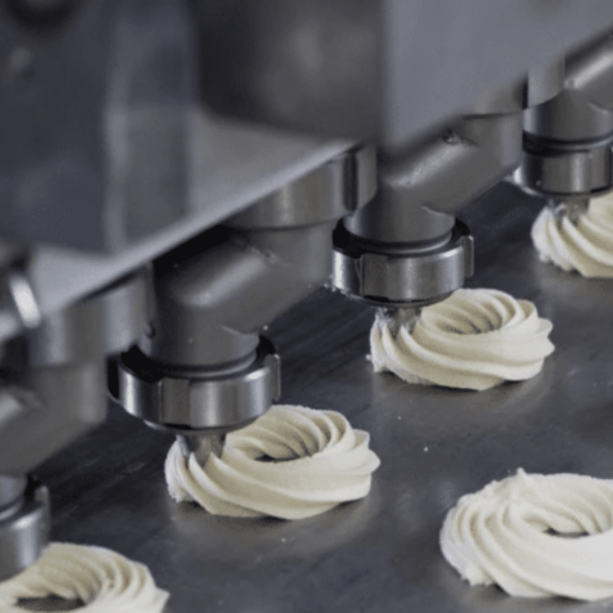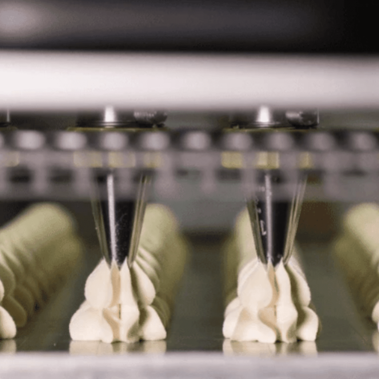 The TRUMP UNIMAC machine is the first universal electronic icing machine of its kind, capable of icing a wide variety of cookies , including shortbread cookies , kisses , praline fillings , muffins , macaroons , eclairs , cupcakes , puffs and more. The machine is suitable for bakeries and confectionery factories that produce high-quality cookies and pastries in large quantities.
