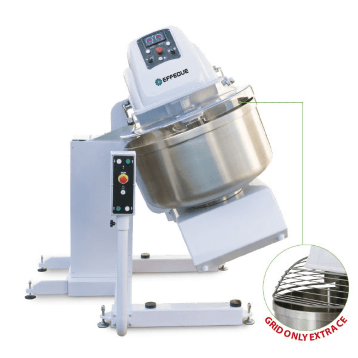 Overturnable mixer is a mixer physically connected to a hydraulic lift. The kneader is approximately at the point where the dough is needed and at the end of the kneading process, the elevator lifts the entire kneader together with the kneading container connected to it and turns it so that the dough falls onto the production table.