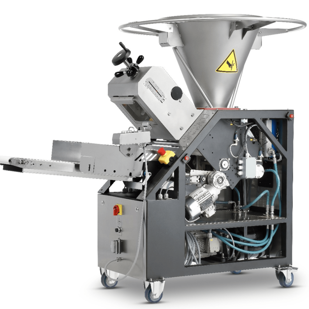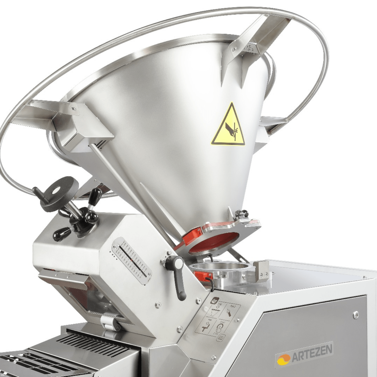 Artezen’s CALYBRA volumetric divider – a professional solution for uniform dough distribution The CALYBRA volumetric divider is an essential tool in the baking and confectionery industry, and is designed to accurately divide dough into pieces of uniform weight continuously. The machine, also known as a “weigher” in bakers’ parlance, offers an ideal solution for bakeries and confectionery factories that produce breads, pizzas and other products on continuous lines. The CALYBRA offers the ability to work with a wide variety of dough types, including hard, soft, pizza, gluten-free and more, and performs accurate division even in doughs with a water content of 45 %-80% . The uniqueness of the divider lies in its ability to work without oil, which reduces the effect of oil on the dough texture and helps maintain the quality of the products. In addition, using the machine saves thousands of shekels a year, since oil is not needed for ongoing operation. The compact design of the CALYBRA department provides maximum flexibility in the production process, allowing the department to be ordered in different weight ranges and with feed tanks in capacities customized to the customer’s needs.